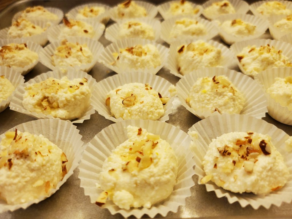 The first dessert we tried was the malai ladoo. This was made by creating the ricotta type product similar to our Belgian meal. This was flavoured with ground cardamom and saffron and then adding sugar. This was then rolled into balls and garnished with chopped almonds. These tasted better than I thought as I was making them, but aren’t anything to be excited about. Some didn’t mind it, but others didn’t finish theirs. Oh, and we definitely left out the optional rose water after our last tasting of it!